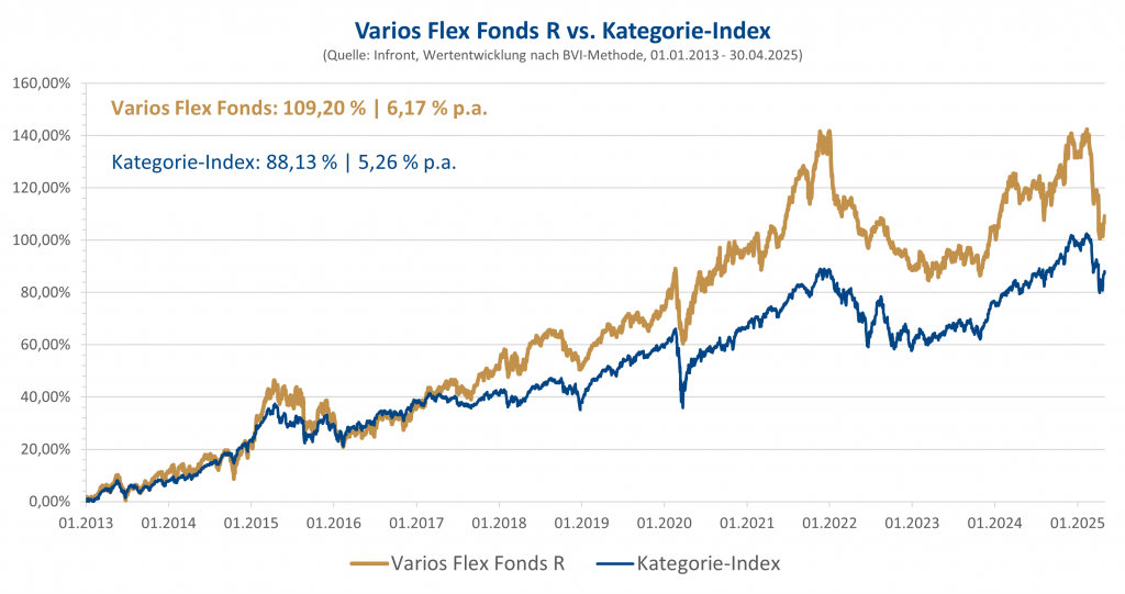 Varios Flex Fonds R vs. Kategorie-Index (01.01.2013 bis 30.04.2025)