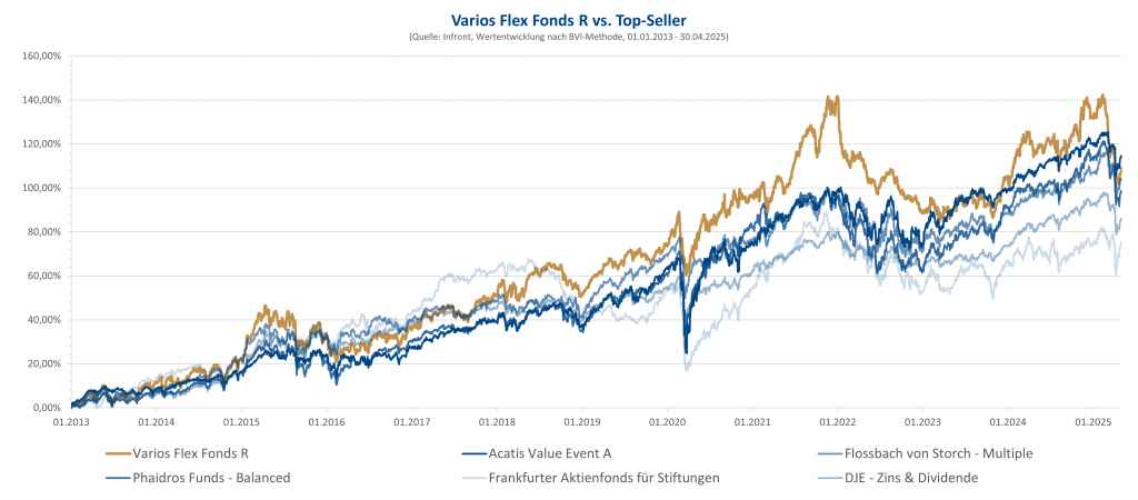 Varios Flex Fonds R vs. Top-Seller (01.01.2013 bis 30.04.2025)