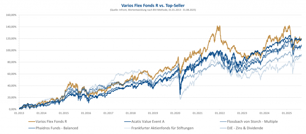Varios Flex Fonds R vs. Top-Seller (01.01.2013 bis 31.08.2025)