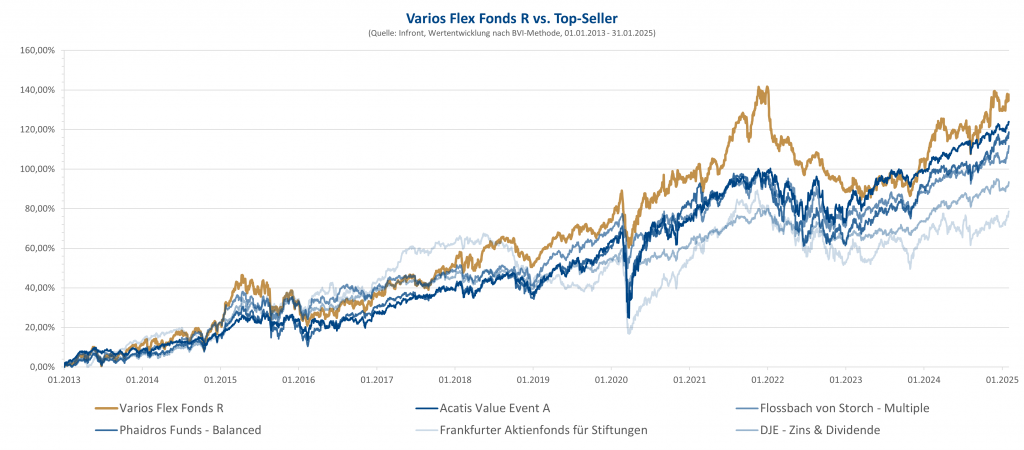 Varios Flex Fonds R vs. Top-Seller (01.01.2013 bis 31.01.2025)