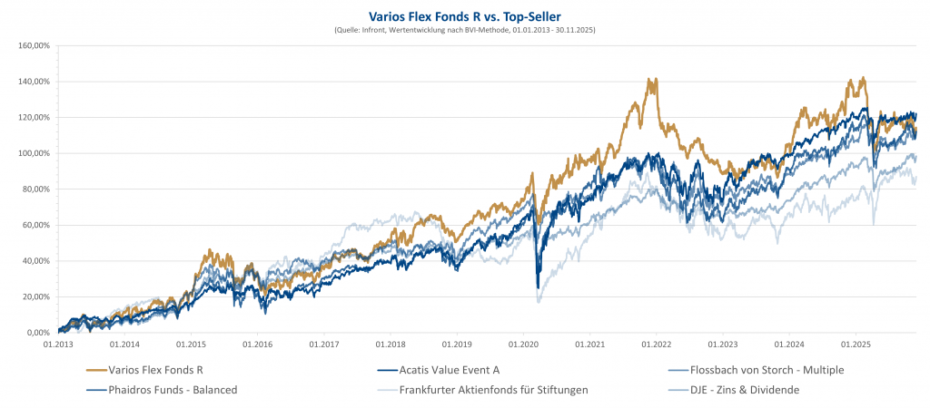 Varios Flex Fonds R vs. Top-Seller (01.01.2013 bis 30.11.2025)